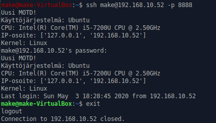 Testataan muutosta käyttämällä ssh yhteyttä.