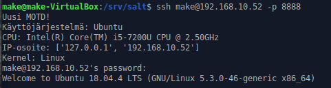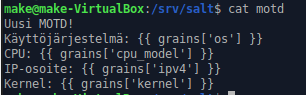 Aloitetaan luomalla MOTD tiedosto /srv/salt hakemistoon.