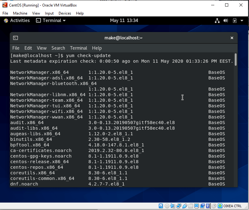 Asennettiin RedHat pohjainen CentOS virtuaalikoneelle.