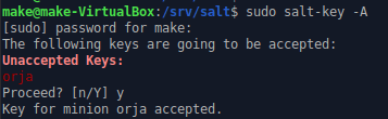 Seuravaksi käynnistetään uudelleen salt-master, jonka jälkeen päästään testaamaan lopputulos.