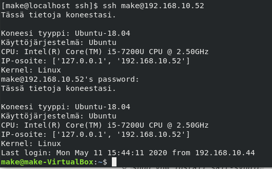 Seuraavaksi testaan lopputulos. Otetaan ensin CentOS koneella yhteys Xubuntu koneseen.